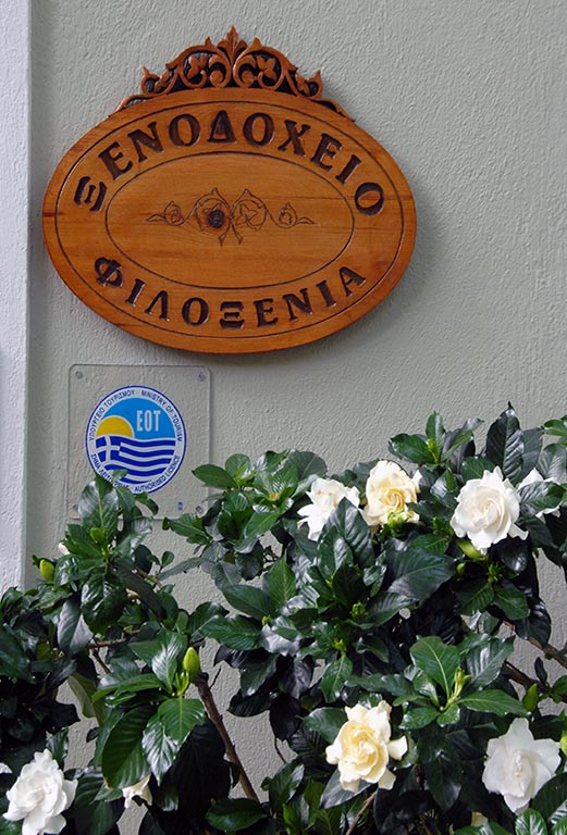 ξενοδοχείο ΦΙΛΟΞΕΝΙΑ μέσα σ’ ένα καταπράσινο περιβάλλον, γεμάτο από αιωνόβια πλατάνια και πολύχρωμες ορτανσίες.