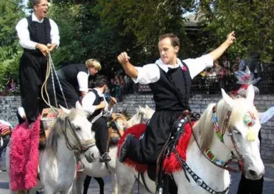 Σε κοντινές φάρμες ή ιππικούς ομίλους, τα παιδιά μπορούν να έρθουν σε επαφή με άλογα ή πόνι και να απολαύσουν σύντομες διαδρομές μέσα στο φυσικό τοπίο.